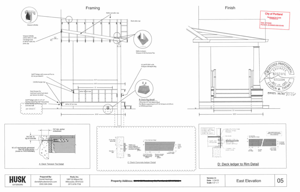 When your project requires engineering calculations and licensed approval, we provide fully-stamped building plans. We start by developing detailed technical drawings that incorporate all code-specific elements. Then, we collaborate with our engineering partners to integrate their requirements. The result is a complete set of stamped building plans, ready for permit applications and use by contractors and inspectors throughout the construction process.